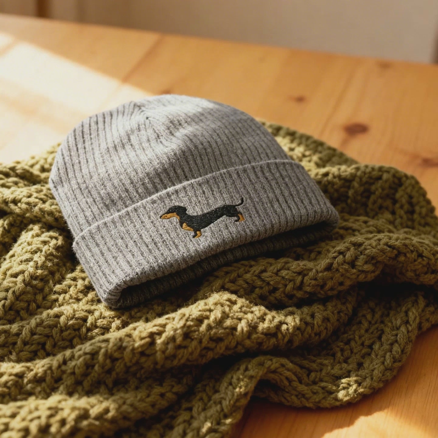 Ob Gassirunde bei Herbstwind oder Waldspaziergang im Frühling – diese gerippte Beanie aus 100 % Baumwolle begleitet dich stylisch, nachhaltig und mit einem Hauch Dackel-Liebe durch die Jahreszeit.