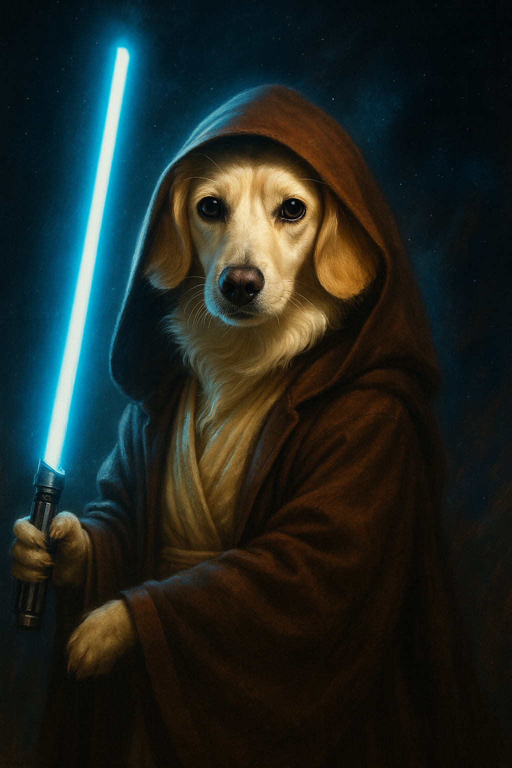 Aus verschiedenen Looks – von Königin bis Jedi. Hochgeladenes Foto, wir liefern das fertige Kunstwerk.
