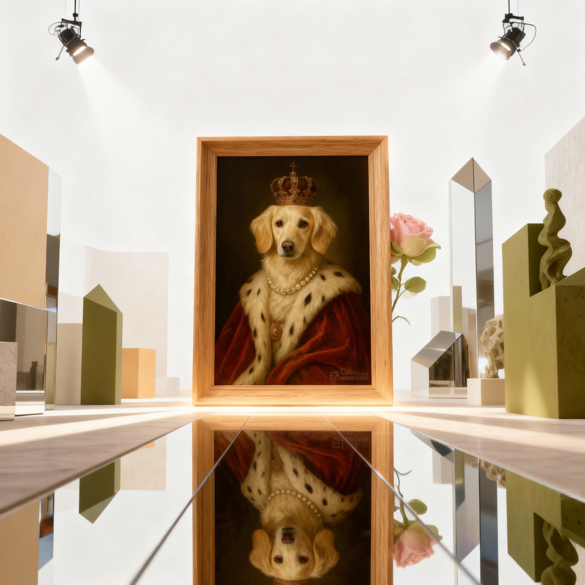 Bereichern Sie Ihr Zuhause mit unserem einzigartigen benutzerdefinierten Haustierporträt. Diese exquisite gerahmte Leinwand bietet eine stilvolle Darstellung Ihres geliebten vierbeinigen Freundes in einem königlichen Design, das sich perfekt für jeden Raum eignet.