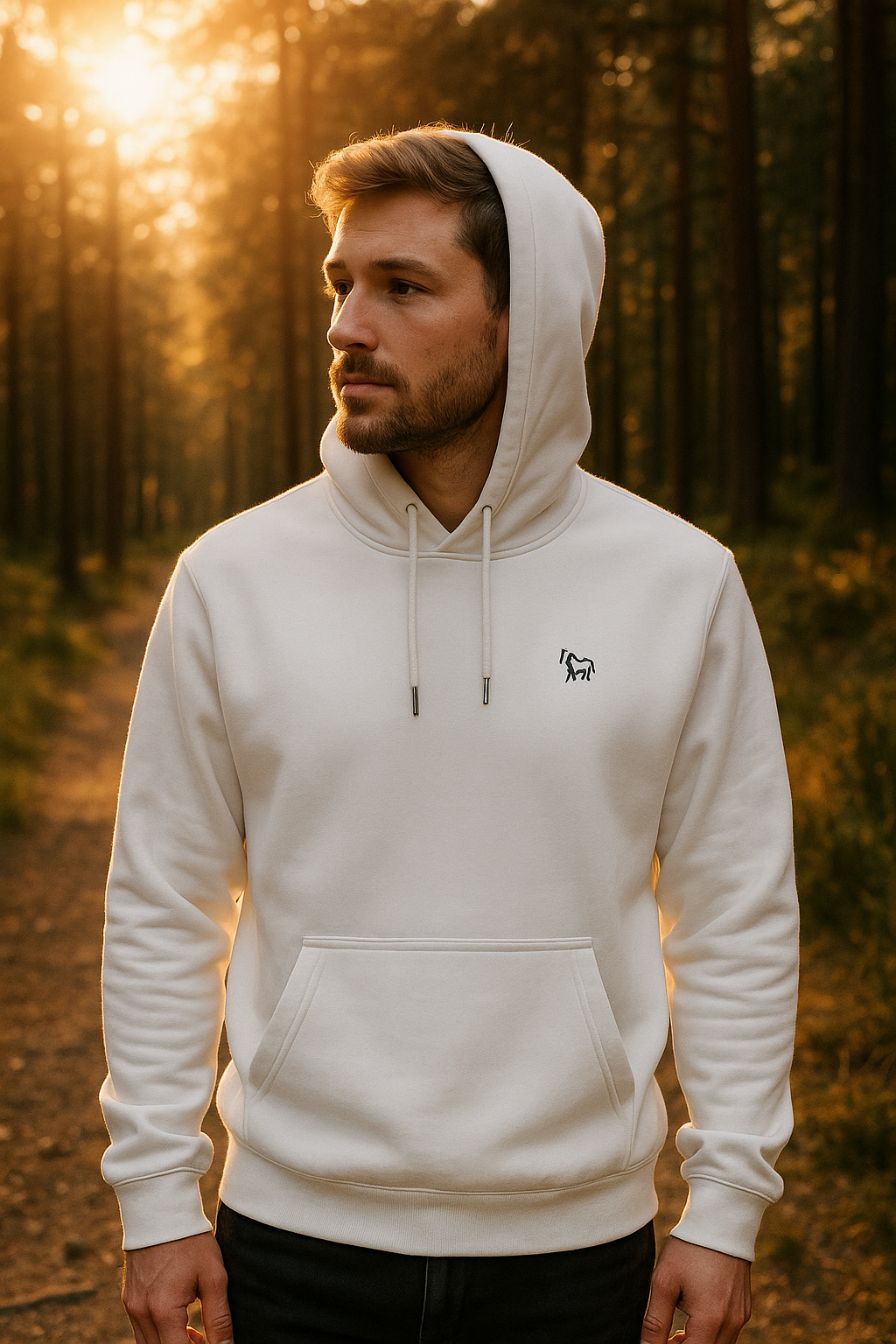 Das gestickte Pferd-Design auf der linken Brust steht für die ruhige, designbewusste Seite der Tierliebe – reduziert, ehrlich und langlebig.